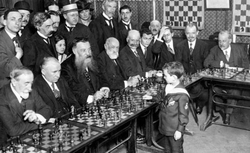 Del ajedrez y la música han nacido más niños prodigio que de ninguna otra pareja de baile. La edad mínima para alcanzar la maestría es además un valor a la baja. Hace nada, un chaval de nueve años se convertía en el maestro FIDE más joven de Estados Unidos, pero el fenómeno no es nuevo, como podemos ver en esta selección de fotografías. Por poner alguna puerta al campo, solo aparecen imágenes de imberbes capaces de repartir estopa incluso cuando los adultos atacan en manada, en sesiones de partidas simultáneas.