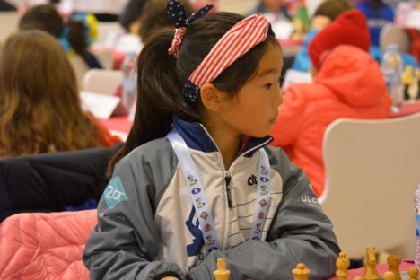 Pero volvamos a la sala de juego. Seguro que algún lector se habrá preguntado por la proporción entre chicos y chicas. Ellas eran algo más de 300, lejos de la paridad pero mucho mejor de lo habitual. Dejo al lector que vea la botella medio llena o medio vacía. Especialmente llamativo es el caso de una niña china, Lu Miaoyi, que competía en el grupo sub 8 masculino (el nombre oficial es abierto, pero está claro que pocas participantes lo ven así). Estuvo todo el torneo en los primeros lugares y no se llevó medalla de milagro. Con su cuarto puesto demostró, como las hermanas Polgar, que las chicas pueden equipararse a los chicos sin problema alguno, algo que no es posible en la mayoría de deportes.