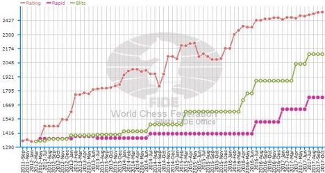 La progresión de su Elo es un escándalo. Terminó con 2015 con un Elo no muy distinto del mío. Menos de dos años después, mientras yo lucho por no bajar, él ha subido más de 400 puntos y creo que no podría hacerle tablas ni con una pieza de ventaja.