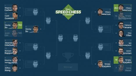 Cada encuentro del torneo Speed Chess se celebrará durante tres horas, que incluyen 90 minutos de partidas blitz 5’+2″, 60 minutos de blitz 3’+2″, 30 minutos más de relámpago 1’+1″. Al final de cada control de tiempo se añade una partida de ajedrez960. En el caso de llegar a un empate, también se jugaría una partida adicional de cada control de tiempo. En el improbable caso de que persista la igualdad, se jugaría una partida Armageddon.