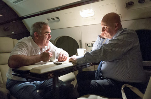 (La fotografía que ilustra esta entrada es de Mig Greengard y pertenece al citado reportaje en ChessBase. En ella aparece su autor entrevistando a Kasparov en el avión privado puesto a disposición del excampeón por uno de los contribuyentes a su causa)