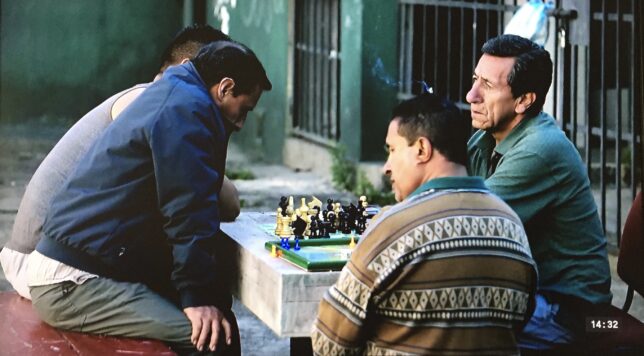 En la tercera temporada de «Narcos» ya no aparece Pablo Escobar. Alguno de sus sucesores es carne de presidio, donde por supuesto no falta el típico plano de reclusos jugando. Poco más que decir en el plano «ajedrecil», aunque la serie sigue siendo excelente.