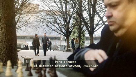 «Sucesor designado» no es tan brillante como las anteriores, pero es muy entretenida. La forma en que Kiefer Sutherland accede a la presidencia es realmente original. Aquí el ajedrez también es un mero recurso, dentro de la Casa Blanca (arriba) o en un parque (abajo), aunque se nota que a los responsables les gustaba subrayar su presencia en lo encuadres.