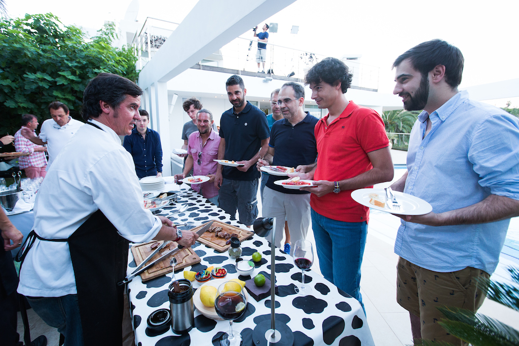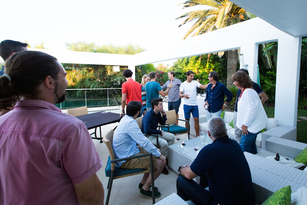 El pasado martes, 15 de julio, tuve el privilegio de asistir en Porto Cristo (Mallorca) a una partida de póquer con Rafa Nadal y sus amigos de toda la vida, además de Juan Carlos Navarro. Junto al pequeño torneo, en el que solo estaba en juego el honor y no ir directo al agua como primer eliminado, se celebró una barbacoa en un ambiente inmejorable. Este domingo ha salido publicado el reportaje en las páginas de ABC, que recupero para el blog en versión algo ampliada (¡todavía más!) y con nuevas fotografías. Las buenas, como la de arriba, son de Neil Stoddart (PokerStars) y el resto, mías.