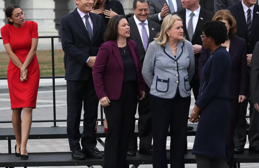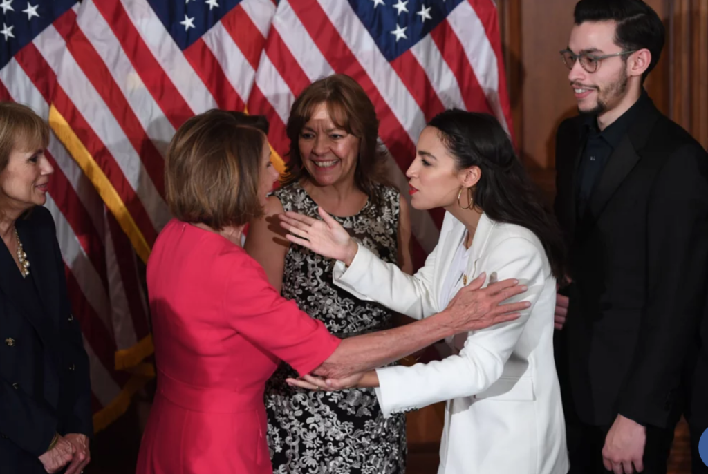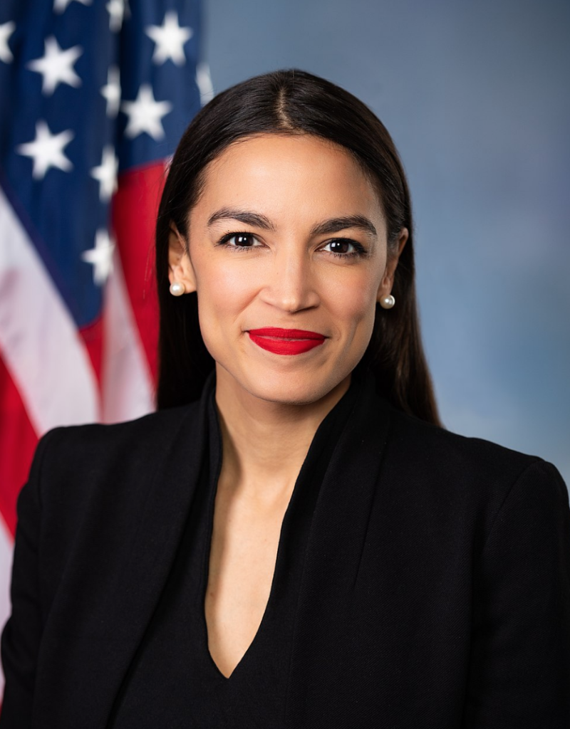 Alexandria Ocasio-Cortez, nacida en el Bronx de Nueva York en 1989, ganó en las elecciones primarias del Partido Demócrata por el escaño del distrito 14 de Nueva York que se celebraron el 6 de noviembre de 2018, convirtiéndose en la mujer más joven elegida en el Congreso en la historia de los Estados Unidos. Hija de padres puertorriqueños, es miembro de la organización de Socialistas Democráticos de América. Ha sido objeto de críticas, entre otras, del Washington Examiner, por declarar no tener dinero para pagarse el primer mes de alquiler en Washington hasta recibir su sueldo como congresista, mientras vestía con prendas que cuestan más que la mensualidad de un apartamento en la capital.