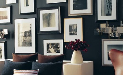 Pintar alguna pared de negro puede parecer tabú, pero suele dar excelentes resultados de corte relativamente clásico. Es un excelente fondo para cuadros y fotografías enmarcadas con passepartout.