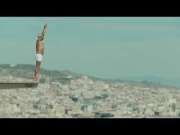 Un original personaje de edad, con cierta semblanza al Picasso de su última época, en ropa interior blanca y casi sin pelo, da volumen al pasodoble que se escucha en su iPhone 7 – con nuevos altavoces estéreo- mientras sube a tirarse desde un gran trampolín, cual torero victorioso.