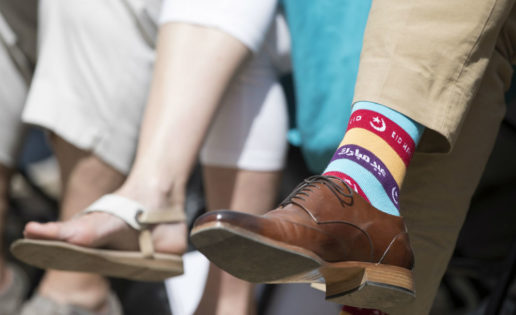 Ahora es Justin Trudeau, el joven primer ministro canadiense, el que ha comenzado a utilizar los calcetines de dibujos y colores con fines protocolarios. La última imagen le muestra durante el desfile del Orgullo Gay en Toronto hace unos días, con unos calcetines con las rayas multicolor de la bandera del colectivo. Además, se ha hecho saber que los calcetines se hacen en Toronto en una empresa local llamada Halal Socks -un nombre con claros orígenes- y cuestan 14.99 dólares. Hace semanas, durante la celebración del día nacional, apareció en las cataratas de Niágara durante el show televisivo estadounidense “Live with Kelly and Ryan” con unos patrióticos calcetines que llevaban la hoja de arce de la bandera canadiense.  En mayo, durante una reunión de la OTAN en Bruselas, el primer ministro Trudeau lució unos calcetines de colores con la bandera de dicho organismo y en otras ocasiones, ha llevado modelos de “Star Wars” o distintos ejemplares de rayas, rombos o dibujos.