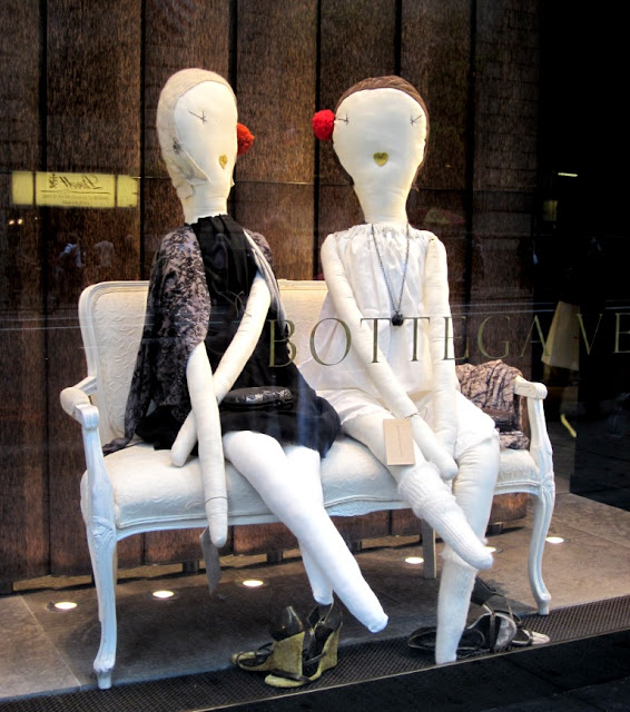 Bottega Veneta utiliza siempre recursos curiosos y elegantes en sus escaparates. Hace tiempo, no dudaron en utilizar las muñecas hechas a mano de Jess Brown en tamaño natural.