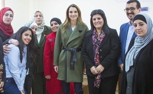 Hace dos días la reina Rania visitó en Amman una asociación caritativa de mujeres chechenas fundada en 1981. Visitó los talleres de la asociación, donde las mujeres fabrican piezas para vender.