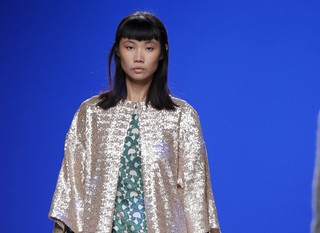 En el primer día fuerte de la pasarela de Madrid, Juan Duyos ha sorprendido con una colección muy vendible. Sus conjuntos alternaban pantalones de gran caída y sencillas faldas largas. Las mejores piezas, las prendas en paillettes de tonos camuflaje, el abrigo de corte kimono con vestido largo y el palabra de honor azul noche.