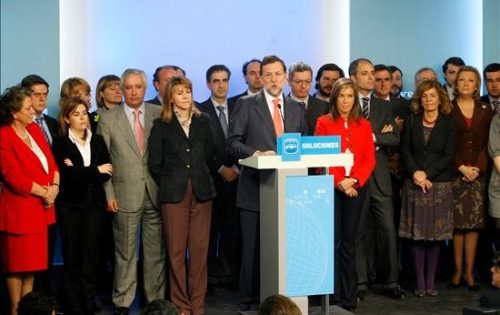 En primera línea Rita Barberá, Federico Trillo, Soraya Sáenz de Santamaría, Esperanza Aguirre, Javier Arenas, María Dolores de Cospedal, Alberto Ruiz-Gallardón, Ana Mato, Francisco Camps y Ana Botella, entre muchos otros. Entonces Rajoy no se enfrentaba como ahora al miedo del portero ante el penalti, esperando que en su tanda Pedro Sánchez se equivoque al lanzar contra una de las escuadras y así no consiga los puntos necesarios para ser investido presidente.