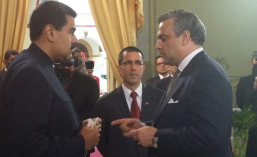 De hecho, Maduro ha pasado a la ofensiva y, aunque no tendrá mucho éxito, acaba de aprovechar la entrega de cartas credenciales de varios embajadores acreditados en Caracas, entre ellos el de España, Jesús Silva (en la imagen), para reclamar una cumbre de presidentes para hacer frente a las amenazas de Trump.