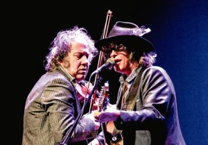 Un tiempo de espera algo largo, debido a la complejidad orgánica de los equipos de ambos conjuntos y la necesidad de cambiar todo en el escenario. Y ya de noche salen The Waterboys, una banda que Mike Scott ha capitaneado con una etapa de discos en solitario, hasta su reunión a principios del siglo XXI. Es un caso curioso el de este poeta, algo gitano del Este en la sangre, criado en las islas Británicas. Los que lo hemos visto en las distancias cortas, sabemos de la magia que es capaz de desprender. Tal vez por ello, te quede un sabor agridulce, casi una mueca, al contrastar que los momentos mágicos se producen cuando elimina los ropajes, cuando ataca al piano, a la guitarra acústica, en prodigiosos dúos con su amigo americano, el del Hammond, o el violinista que parece sacado de una boda zíngara y con el que se compenetra de manera maravillosa. Esos momentos dan por bien pagada la entrada. Aunque sea, claro, los éxitos “The Whole of The Moon” o “Fisherman´s Blues”, reservados para el final el primero, y para el bis el segundo, los que hagan que nadie quisiera irse del recinto, terminado el concierto. Y entiendo por qué. Hubo mucho relleno, incluso golpes de efecto inconsistentes, como la broma imitando a los Kiss, y un giro hacia el rock & roll, que sí, que pueden tocar “Jumpin´ Jack Flash” con dignidad y actitud, y Mike Scott puede poner sus pies sobre el teclado a lo Jerry Lee Lewis, pero el ropaje rockero clásico impide ver el maravilloso bosque donde habita Mike. Hay destellos, como estrellas fugaces que pasaran por encima del Botánico cuando ataca al piano “A Girl Called Johnny”, “The Pan Within”, una fiesta gitana con hoguera, fantástica, o el empuje de “The Medicine Bow”. Y tal vez esa magia es la que busca el público, sin aditamentos, pese a que “Nashville, Tennessee” sea una de las canciones salvables de sus últimos discos. Mike y sus chicos han hecho un buen trabajo, muy concentrados, haciéndose seguir y entrar en la fiesta, cada vez más. Aunque te queda ese poso que reconoces, según sales, de que podría haber sido de otra manera, una fiesta gitana a la orilla de un río a la luz de la luna, y que no es un sueño, que con Mike Scott y el violín teosófico de Steve Wickham todo puede suceder. Y que esta noche, eso que intuías, no ha ocurrido. A veces pedimos demasiado. Qué le vamos a hacer.