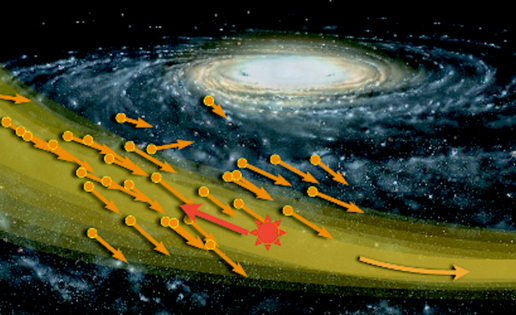 Según la investigación, todo nuestro Sistema Solar está a punto de «hundirse» en los restos de una antigua galaxia, devorada hace mucho por la Vía Láctea. Y sabemos que todas las galaxias están rodeadas de materia oscura. Por ejemplo, cuando el Sol y sus planetas se mueven alrededor de nuestra Vía Láctea, todo nuestro sistema viaja a través del halo de materia oscura a una velocidad de 230 km/s. La materia oscura, por lo tanto, nos aparece como un «viento» de alta velocidad.