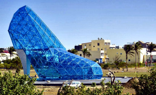 Un enorme zapato de tacón de cristal, de 17 metros de alto y 11 de ancho, está a punto de inaugurarse en el sur de la isla de Taiwán. Un edificio en cuyo interior se puede entrar, que ha sido construido durante más de cuatro meses y para la que se han utilizado 320 paneles de vidrio azul. Su costo ha sido más de 600.000 euros y se abrirá al público con motivo del Año Nuevo Lunar (en esta ocasión el del Mono) a principios de febrero.