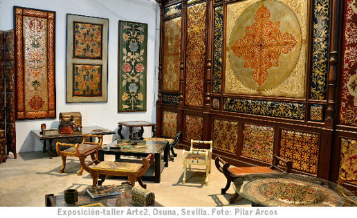 Pero personajes como Antonio Rodríguez Hidalgo, restaurador, decorador y pintor, hombre renacentista según quienes lo conocieron, propiciaron que renaciera al fundar en 1995 en Sepúlveda (Segovia) un taller de cordobán y guadamecí en el que participaba muy activamente su mujer Marisol Barrio, y que más tarde se trasladaría a Osuna. Aquí, en el taller Arte2, lo llevan hoy sus discípulos Alberto Delgado y Manuel Morillo que luchan contra viento y marea para que no desaparezca una de las artesanías (ellos prefieren llamarlo Arte, con mayúscula, y creo que tienen razón) más interesantes de nuestro legado cultural.