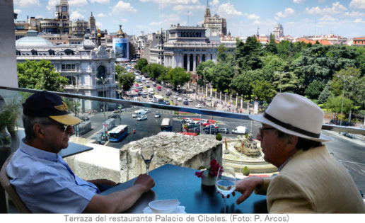 En el piso sexto del que fuera Palacio de Comunicaciones desde 1919 y ahora es Ayuntamiento de la Villa y Corte, hay un restaurante que lleva con notable éxito el chef Adolfo Muñoz, el del restaurante Adolfo de Toledo. Es verdad que su cocina es de una calidad proverbial, pero también es cierto que muchos de los clientes vienen atraídos, al menos en principio, por su magnífica terraza con vistas excepcionales a la Cibeles, la calle Alcalá, el Banco de España, e incluso la Telefónica y la Torre de Madrid en lontananza.