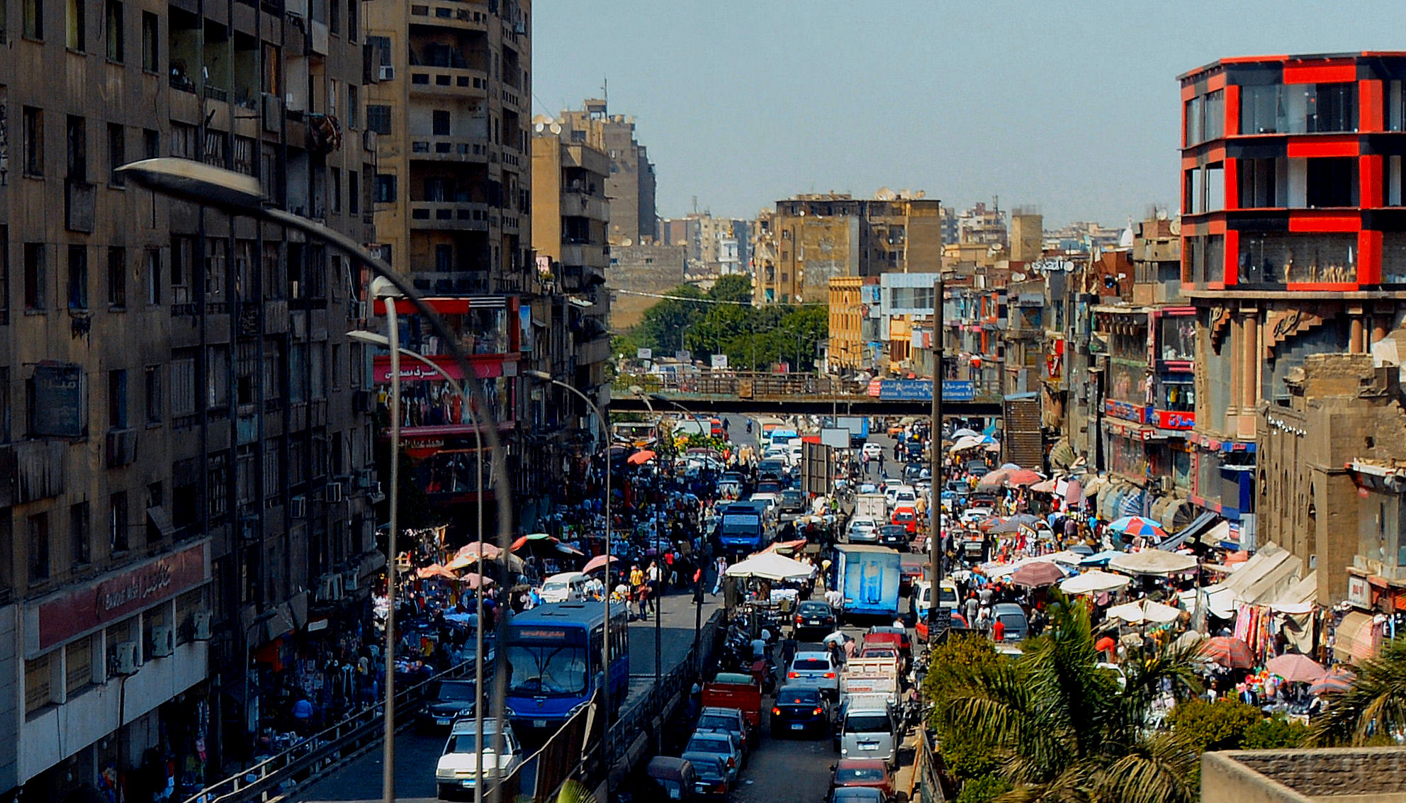 Zocos, bazares, ferias, mercados, mercadillos... tinglados callejeros fijos como el Jan el-Jalili, hoy dirigido sobre todo a los turistas, y semanales como este de Al Ataba, al que acude la población local los martes. Ropas, comidas, cacharros, productos para el quehacer diario, precios bajos, regateo indispensable. No atrae a muchos turistas, pero en su autenticidad radica su interés. Visto desde una de las vías de circunvalación, me recuerda al Rastro madrileño. Solo hay que cambiar la Ronda de Toledo por la calle Musky. Y el euro por la libra egipcia. 1€ = 21EGP, más o menos.