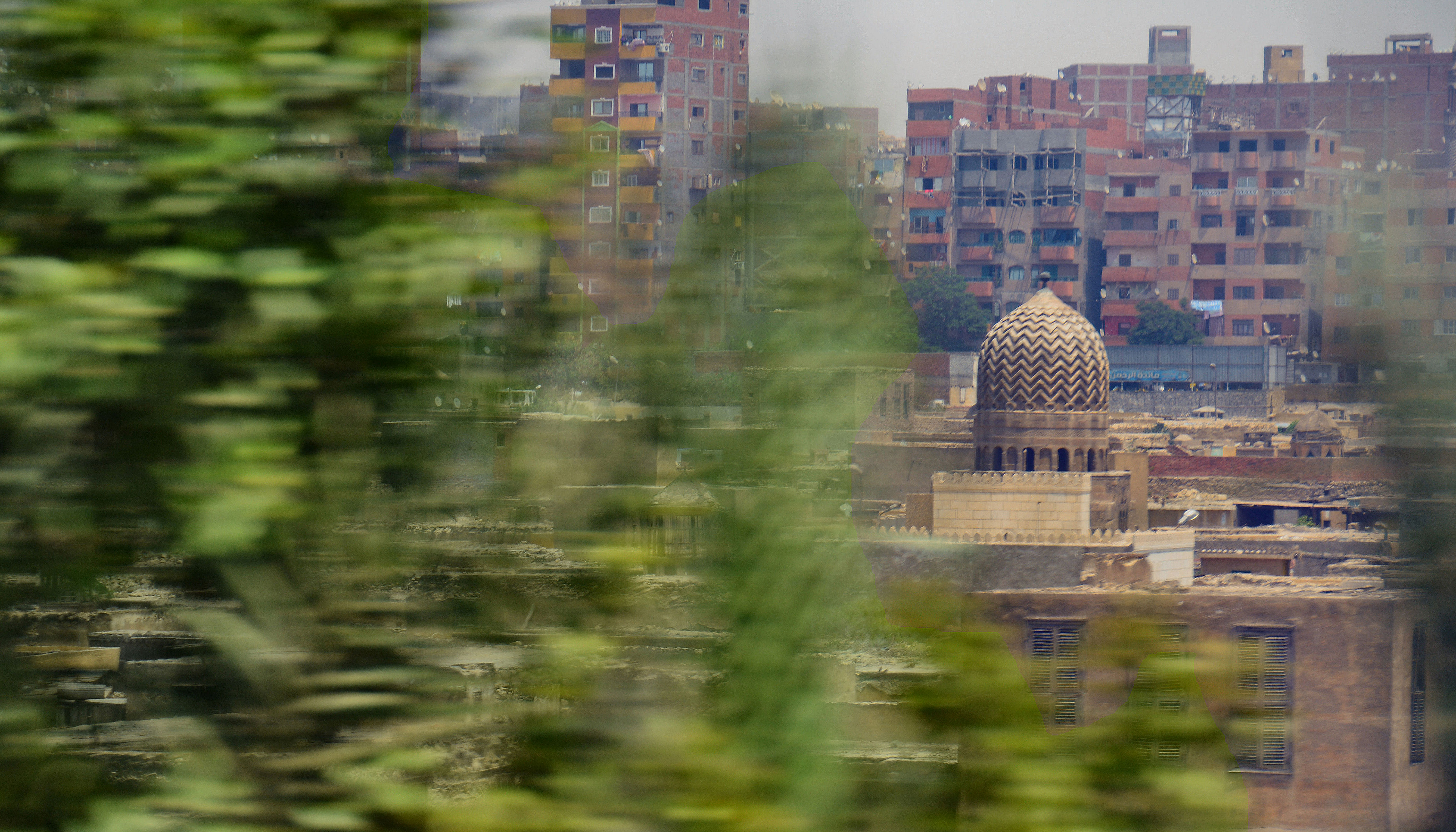 Lo hago al azar y veo que entre las hojas movidas de los árboles aparece una cúpula apepinada y al fondo casas modernas inacabadas. Dos constantes en el paisaje cairota. No acabar del todo las casas, dejar las fachadas sin revocar o los pisos superiores sin cerrar es una artimaña legal para pagar menos a Hacienda, que exige un impuesto cuando se acaba el edificio.