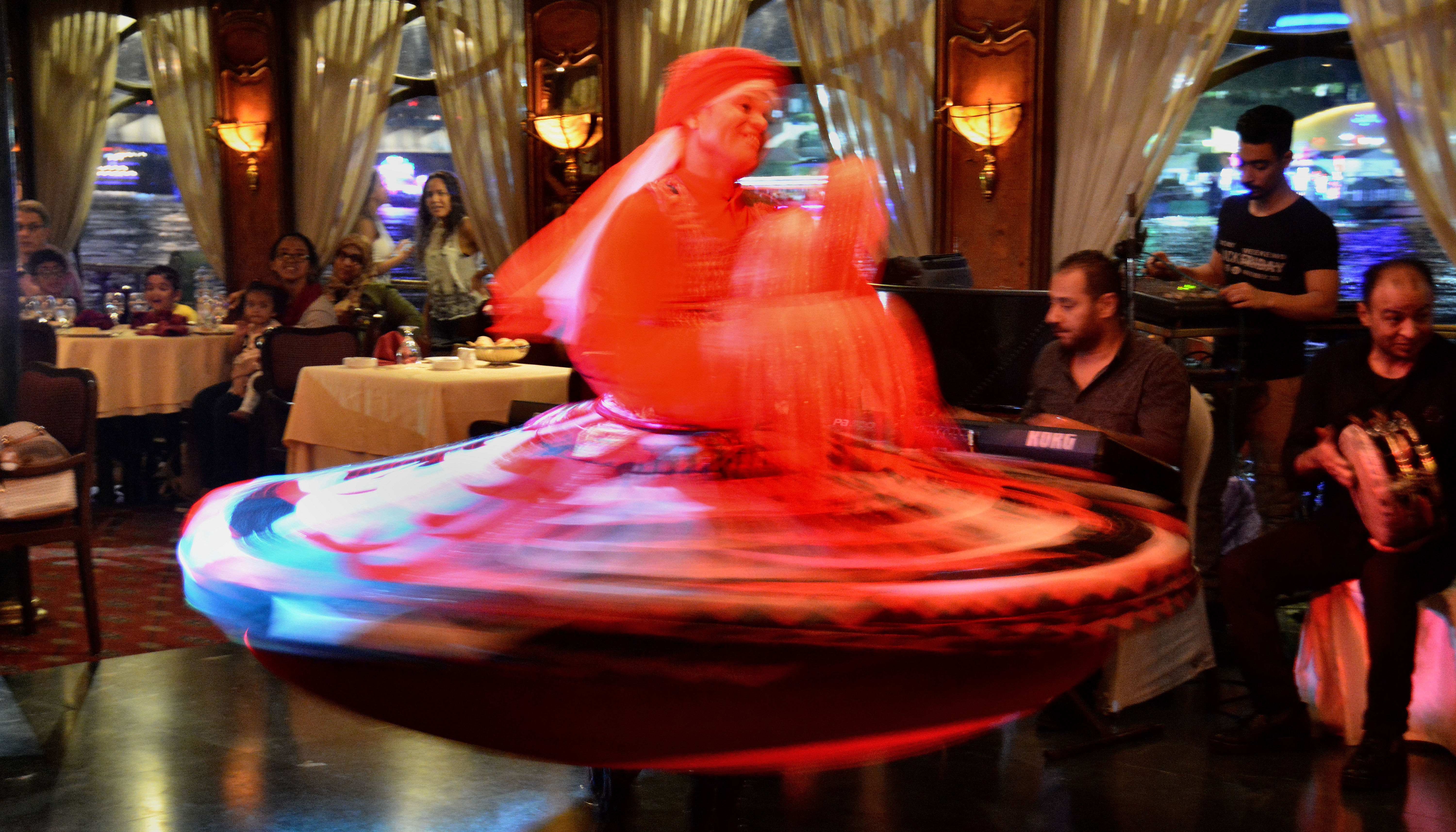 Un derviche giróvago en el show de un barco del Nilo.