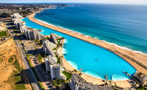 La piscina más grande del mundo se encuentra en Chile, en el complejo de vacaciones San Alfonso del Mar, en el Algarrobo, a 90 km. de Santiago.