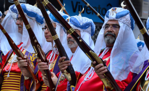 Al menos desde el siglo XVII se celebran en el Levante español unas fiestas populares llamadas de Moros y Cristianos que rememoran las batallas de la Reconquista para recuperar los territorios que gobernaban los musulmanes. Sus escenarios tradicionales son localidades de la provincia de Alicante y el sur de la de Valencia, aunque también algunos pueblos de Murcia y el este de Andalucía. De un ambiente esencialmente reivindicativo se ha ido pasando al jolgorio festivo.