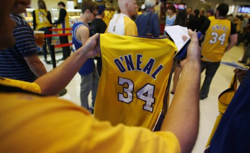 De reojo, la gente se preguntaba qué era. Miraban la camiseta colgada en lo alto del Staples Center y veían algo raro, pero no sabían el qué, hasta que cayeron en la cuenta. Todas las demás camisetas retiradas, de leyendas como West, Chamberlain, Abdul-Jabbar o Magic Johnson, lo estaban mostrando la parte trasera. En el caso de la de O’Neal, era justamente al revés. Un error que los Lakers conocían, como apuntaba poco después su portavoz John Black, y que subsanarán en los próximos días para que esté “a juego” con el resto.