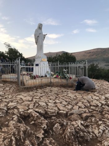 Junto a este lugar sagrado, hay otros en los que los peregrinos encuentran la presencia de Dios. El monte Podbrdo, donde se apareció la Virgen. Una escarpada subida entre piedras y arbustos hasta llegar a la cima, donde se encuentra una imagen de la «Gospa». Desde allí lanzó su primer mensaje: «Paz, paz, paz y solo paz».