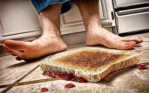 Antesala de la consulta del proctólogo. Ominosos pensamientos ocupan mi mente sin saber por qué. Los disipa un cuarentón locuaz que habla en voz alta a cinco señoras escupiendo lugares comunes: “Mala suerte es que la tostada cae siempre hacia…