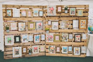 Otros elementos totalmente actuales son la madera, ya sea en marcos, palés o caballetes, y objetos cotidianos como pueden ser los platos, botellas pintadas o incluso ventanas con cristales transparentes.