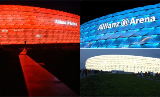 El estadio tiene muchas peculiaridades, pero desde el punto de vista del visitante quizá la más llamativa es su capacidad para mudar la piel. Es rojo, blanco o azul, según el momento. Blanco si juega la selección alemana, rojo si es el turno del Bayern de Múnich, y azul cuando el equipo de casa es el TSV 1860 München, un equipo de la segunda división alemana. La iluminación obra el milagro y deja claro a muchos kilómetros de distancia quién mueve el balón, de quién es el campo esa noche.