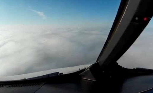 Un avión se dispone a aterrizar en el aeropuerto de Dublín. Alrededor solo se ve niebla, un gigantesco y espeso océano de niebla. No se ve la pista, ni el horizonte. Este vídeo muestra el viaje desde el cielo a la tierra a ciegas, sin ver absolutamente nada. “Estoy seguro de que está ahí abajo”, se escucha en un momento en la cabina, en referencia a la pista de aterrizaje que no aparece por ningún lado. En un momento dado, el capitán decide volver al piloto automático. Por último, a cien metros del asfalto, aparece ante sus ojos (y ante los nuestros) la pista de aterrizaje. Todos están a salvo. El vídeo ha sido subido a YouTube con esta explicación: “Es una mañana de niebla en Dublín. Se prevé un claro antes de tomar tierra, pero ese claro nunca aparece. Optamos por un aterrizaje automático. Este vídeo muestra lo ocurrido desde la cabina.”