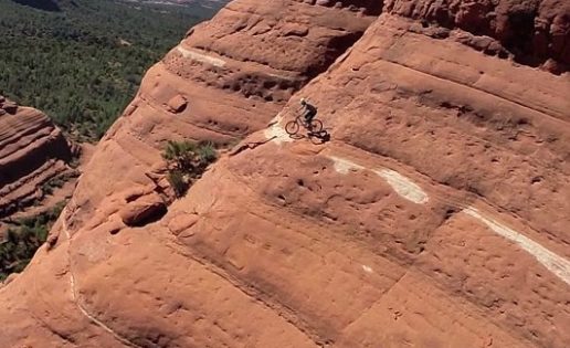A este camino se le conoce como White Line. Está en las montañas rojas de Sedona, Arizona. Como se aprecia en el vídeo, se trata de una pared casi vertical de piedra roja, atravesada por una línea blanca en el que apenas cabría una rueda de coche. Dicen que es la pista de bicicletas de montaña más peligrosa del mundo. Un pequeño despiste significaría caer al precipicio. El ciclista Michal Kollbek, un profesional de la especialidad, lo ha logrado, y su hazaña se ha convertido en el vídeo viral de estos días. Hay razones: además de la espectacularidad de la ruta, el vídeo ha sido grabado con un drone, lo que aporta una perspectiva única del entorno y de la dificultad del camino. Al fondo se ve el Red Rock State Park. Y por todas partes, la atracción principal de Sedona, esas formaciones de arena roja, impresionantes sobre todo al atardecer, un imán para turistas de todo el mundo y para aventureros. Según ha contado Kollbek a los medios estadounidenses, hizo la ruta a pie dos veces, hasta que decidió que sí, que se iba a atrever a utilizar la bicicleta. Este es el resultado.