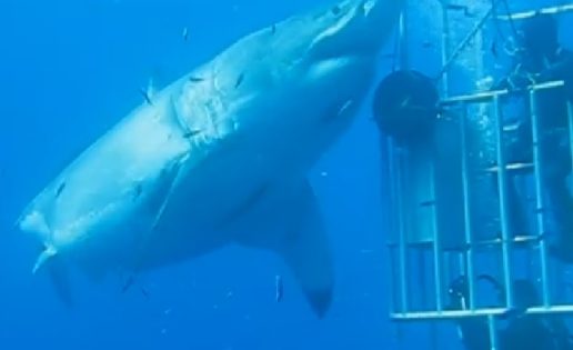 -En noviembre del 2013, en Isla Guadalupe, México. Fue grabado desde las jaulas para buceo con tiburones desde un barco de ecoturismo.