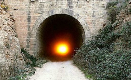 Volverá a ocurrir este jueves, 17 de septiembre, a las 7.48 de la mañana. El sol del amanecer cruzará de punta a punta los 2,4 kilómetros del túnel de Valdealgorfa, en la provincia de Teruel (en el Bajo Aragón, a 16 km de Alcañiz). Es un pequeño milagro relacionado directamente con su orientación y con la naturaleza. Durante unos segundos, el sol se alinea perfectamente con el túnel y permite que los rayos entren por un extremo y salgan por el otro. Y así, dos veces al año, en torno a los equinoccios de primavera y de otoño. Vecinos del pueblo y algunos turistas se acercan a la vieja vía abandonada para asistir al momento, comentarlo, celebrarlo con un café y unas pastas (paga el Ayuntamiento). La estación formaba parte de la línea de Val de Zafán, con la que se quiso unir el Bajo Aragón con el Mediterráneo. La línea se contruyó entre 1923 y 1942, y sólo estuvo abierta de 1942 a 1973. El túnel de piedra mide 3,10 m de ancho por 3,60 de alto, aproximadamente, porque no es un rectángulo perfecto, y está cerca del pueblo, a unos 300 metros de la estación.
