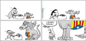 Y ahora, cuando empezábamos a salir de la crisis, el secesionismo catalán, como si fuera una ave de presa, ha empezó a hacer caídas en picado, tratando de convertir a todos los catalanes en presas desesperadas que no pueden soltarse de sus garras.