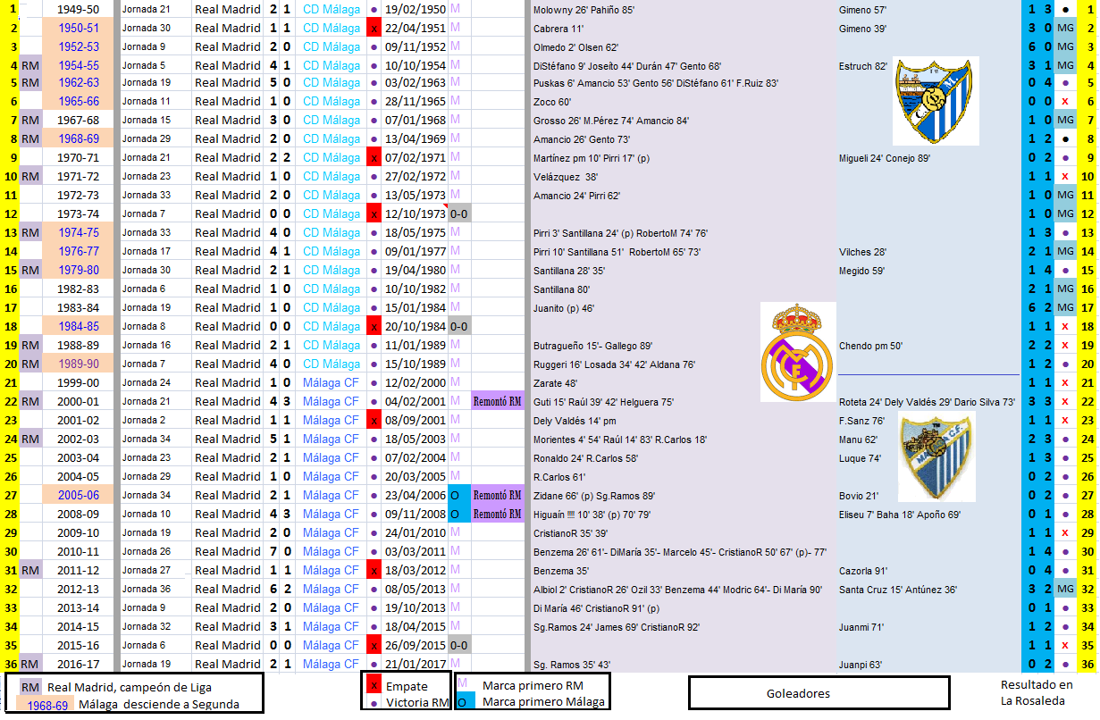Nunca ha ganado el Málaga en el Santiago Bernabéu en los 36 partidos disputados en la historia de la Liga, de los que tan solo empató en siete; tres de ellos y 13 derrotas, desde que el CD. Málaga dio paso al Málaga CF.
