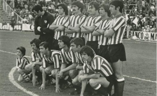 «Hace años cuando jugaba el Athletic (en ChamartÃn), el ambiente se notaba en las calles. Casa Yusta, en la plaza Mayor, vendÃa 500 boinas en las vÃsperas de viernes y sábado. Ahora, ni llueve ni se vende una boina.» DecÃa la crónica de ABC de la visita de los bilbaÃnos al Bernabéu, en la 1974-75. Los blancos habÃan cantado el alirón a falta de seis jornadas y recibió al Athletic, a cuatro del final. Los vascos estaban a un punto de los puestos de descenso; terminaron la Liga décimos, con solo dos puntos más que el Málaga, que perdió la categorÃa; y solo cinco menos que el segundo, Zaragoza, que quedó a 12 del Real Madrid. El partido se televisó en directo, un domingo por la noche y por entonces el público se retraÃa de ir al estadio si habÃa tele. Pueden observarse las gradas de la foto de aquella alineación de los leones, la formada por IrÃbar; Escalza, Astrain, Madariaga, Guisasola (salió Núñez, a los nueve minutos por lesión), Rojo II, Villar, Zabalza, Carlos, Rojo I y Lasa I. Además, la afición recibió al campeón de Liga con un aplausito breve. «Es la primera vez en la historia del fútbol en Madrid que la visita del Athletic de Bilbao no ha tenido recibimiento, como un rey destronado que llegase a Barajas y no encontrara un polÃtico de su paÃs, ni del nuestro, ni un amigo…» contaba ABC en aquel partido, con alrededor de 30.000 espectadores.
