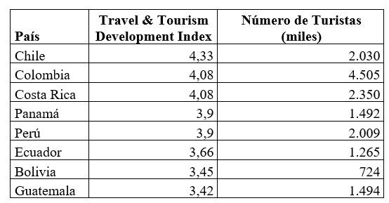 Tabla 1. Travel & Tourism Development Index – Número de Turistas
