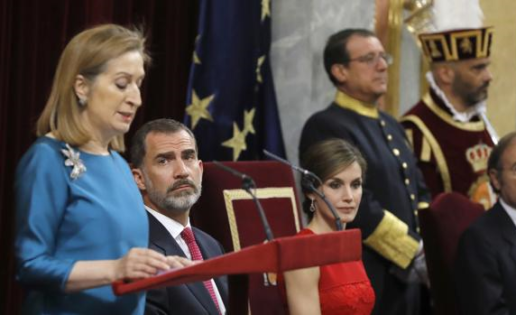 Nota: he tomado prestada la fotografía de ABC.es que muestra en primer plano el discurso de Ana Pastor, mujer política relevante y Presidenta del Congreso, en lugar del encaje rojo y el trocito de sostén de la reina.