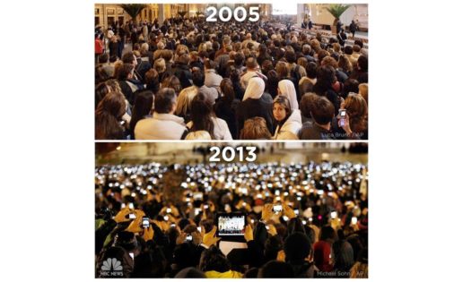 La imagen, publicada en evangelidigitalización, muestra dos instantáneas tomadas en la plaza de San Pedro del Vaticano con apenas ocho años de diferencia, entre la proclamación como Papa de Benedicto XVI en 2005 y la de Francisco I.