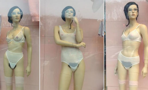 Parece que la firma American Apparel ha tomado nota de la tendencia latente para las partes Ãntimas de las chicas. ¿Resultado? Para el escaparate con la promoción de San ValentÃn, han elegido conjuntos de lencerÃa blancos. Para lucirlos, los han expuesto sobre maniquÃs que tienen «vello púbico» (ver fotos).