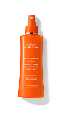 – Bronz Impulse de Esthederm es un spray facial y corporal con una tecnología patentada (Adaptasun) que acelera y estimula la producción de melanina, además de optimizar su distribución por toda la piel. Se aplica cada mañana durante los 7 días anteriores a la primera exposición para acelerar el bronceado, aumentar las capacidades antioxidantes de la piel y reducir los riesgos de reacción cutánea. También lo podéis usar 20 minutos antes de la tiraros al sol, debajo del fotoprotector, y por la noche antes del aftersun, si queréis darle a la piel toda una recarga de defensas antioxidantes. 47€ en farmacias, centros de estética y web Institut Esthederm.