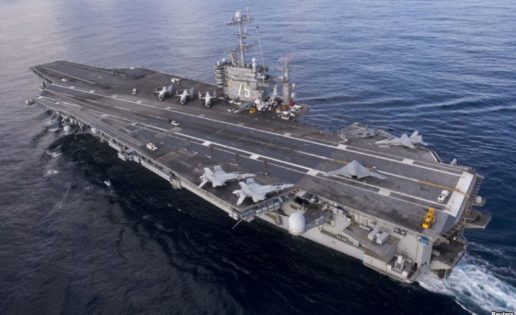 Junto al octavo portaaviones de la «clase Nimitz» de la US Navy -cuya propulsión se realiza con dos reactores nucleares– se despliega su Grupo de Ataque (HST CSG, en las siglas estadounidenses) compuesto por otros cuatro buques de guerra: los cruceros USS «San Jacinto» y USS «Gettysburg» y los destructores USS «Mason» y USS «Bulkeley», todos equipados con sistema Aegis de combate para interceptar misiles. 6.000 es el número aproximado de marinos y fuerzas especiales de los Marines a bordo de estos buques estadounidenses.