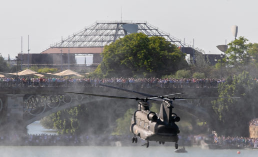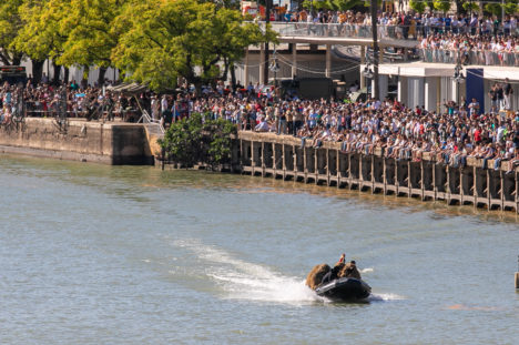 Estas declaraciones las efectúa el teniente general Gómez de Salazar después de una exhibición militar en plena ribera del Guadalquivir y en la que participaron militares de Operaciones Especiales, de la UME, helicópteros, drones, perros, cazas. No cabe un alfiler. Como si fuera la Semana Santa. «En Sevilla das uno y te devuelven cinco. Se me encoge el corazón de ver a tanta gente», termina.