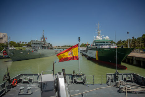 Una «base naval» con cinco buques y un submarino completará, en el Muelle de las Delicias, la exhibición castrense que ha atraído ya a miles de sevillanos durante las últimas 48 horas a los actos previos organizados por el Estado Mayor de la Defensa (EMAD).