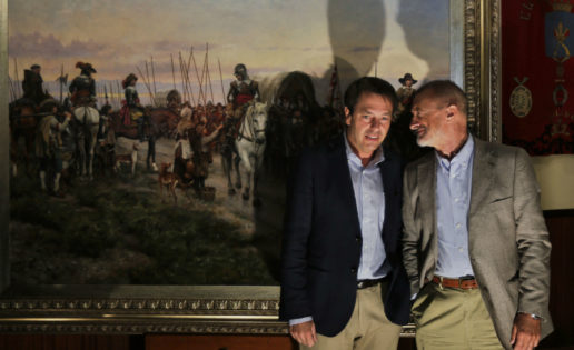 El pintor Augusto Ferrer-Dalmau ha presentado este miércoles en el Palacio Real de Valladolid el cuadro «El Camino Español», en compañÃa del escritor Arturo Pérez-Reverte.