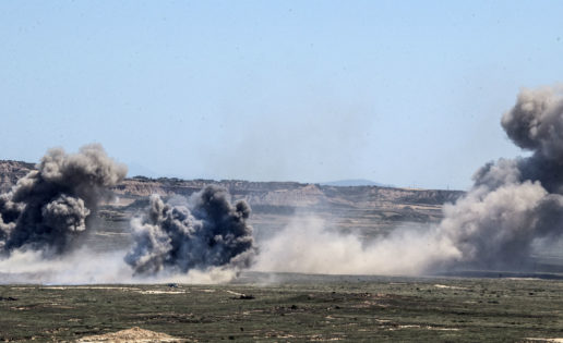 El Ejército del Aire ha probado durante esta semana sus aviones de combate con armamento real en el polígono de tiro de las Bardenas Reales (Navarra) en las maniobras Tormenta 15, las más importantes que se celebran al año de este tipo.