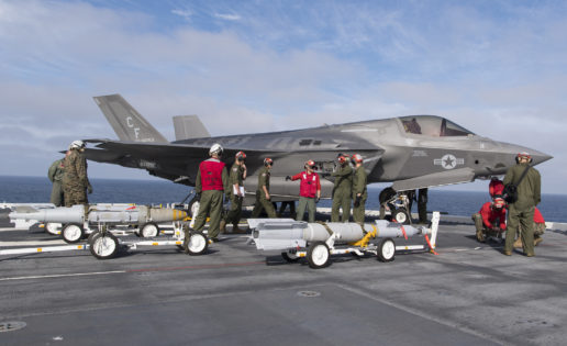 Así, se han llevado a cabo las primeras pruebas con estos aparatos equipados con bombas en alta mar a bordo del buque anfibio USS America, en aguas del Pacífico.